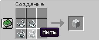 Также блок белой шерсти можно создать объединив в верстаке 4 нити.