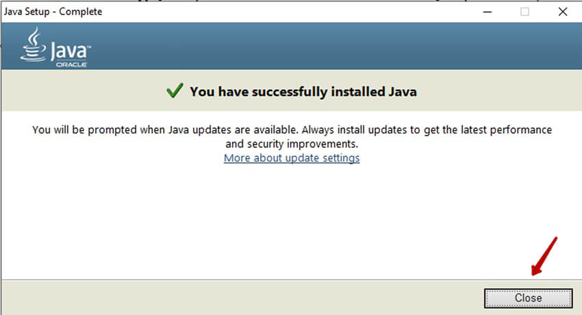 Установка занимает буквально несколько минут. По завершению тебе высветиться следующее окно с информированием о завершении установки. Нажимаем ‘Close’ и переходим к следующему этапу - установке игры Майнкрафт.